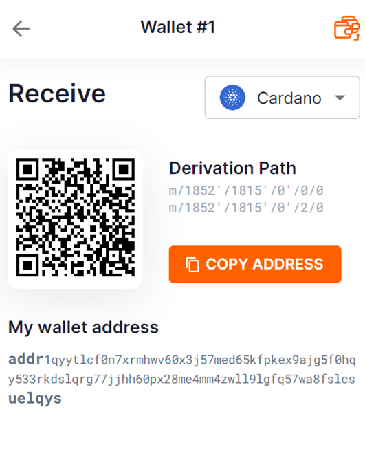 10. Now go to your Flint wallet and copy the receive address and paste it into the Cardano field in the bridge