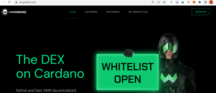 13. Go to WingRiders DEX at https://www.wingriders.com/ and “ENTER APP”.
