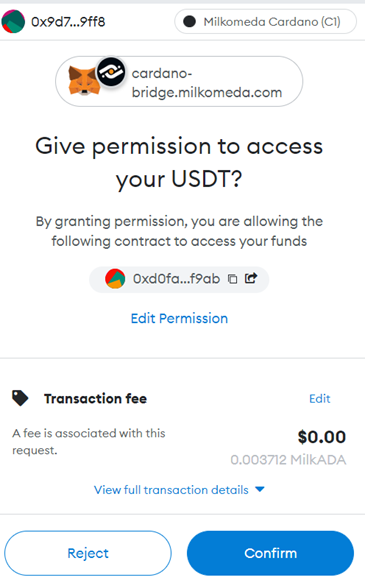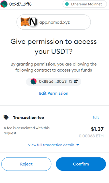 Press “next step”, and “Confirm” giving permission to access your USDT.