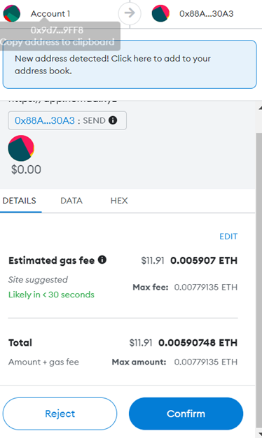 4. There are two gas fees you will need to pay, one is to give permission to access your USDT, in this case $1.37. Press “Confirm” and then you will now need to confirm the transaction in Metamask which in this case will cost $11.91 in gas fees. Please note that network fees change depending on many factors. When congestion on the network is high, gas fees tend to be higher, so try different times of the day and see when you can get a better price