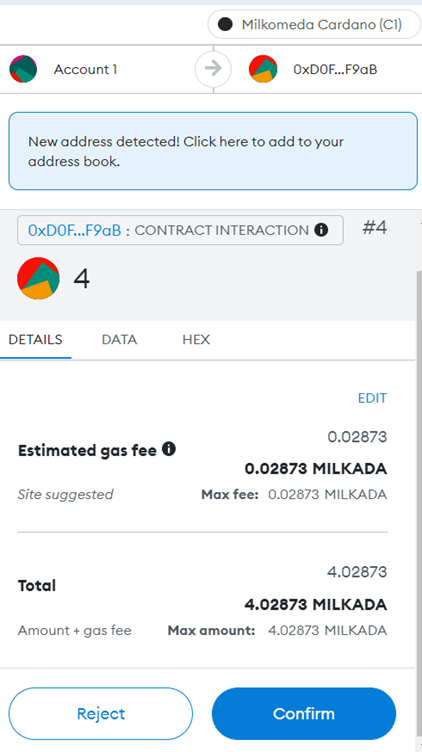 The transfer will require 10 confirmations, which should take approximately 5 minutes. Once the transaction is confirmed, the transferred MilkADA should be visible in your Milkomeda C1 wallet on MetaMask.