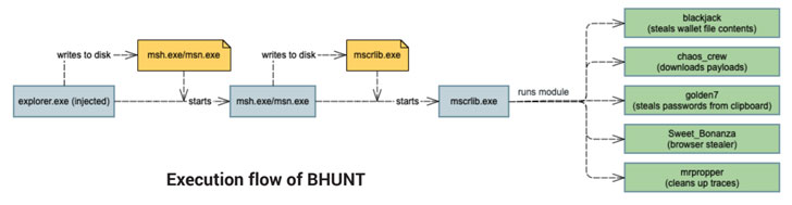 “BHUNT is a modular stealer written in .NET, capable of exfiltrating wallet (Exodus, Electrum, Atomic, Jaxx, Ethereum, Bitcoin, Litecoin wallets) contents, passwords stored in the browser, and passphrases captured from the clipboard,” Bitdefender researcher said in a technical report on Wednesday.